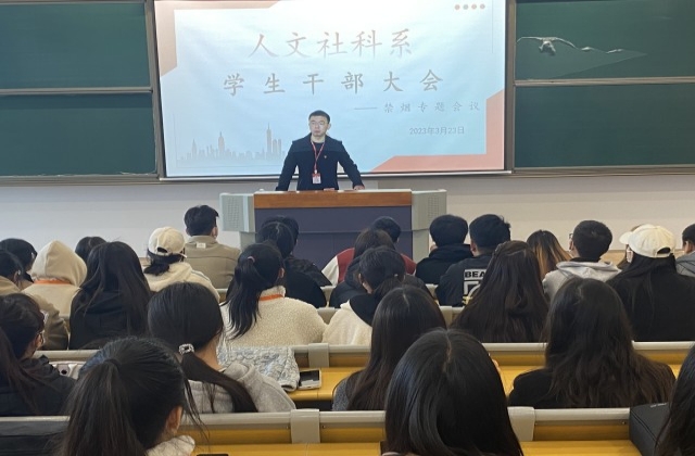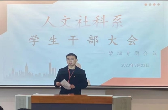 为进一步落实《星空网页版登录入口校园禁烟管理制度》、《星空网页版登录入口2023年禁烟工作实施方案》,提高学生干部的思想意识,增强禁烟工作的积极性,带动周围同学进一步实施禁烟管理制度,2023年3月23日,人文社科系在善学楼102召开系部学生干部大会——禁烟专题会。大会由杨军老师主讲,人文社科系全体学生干部参加。