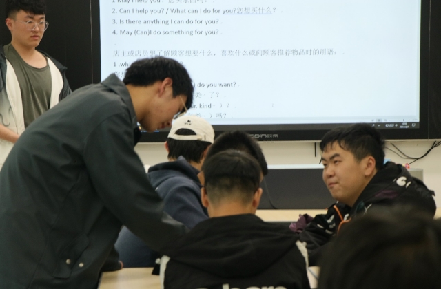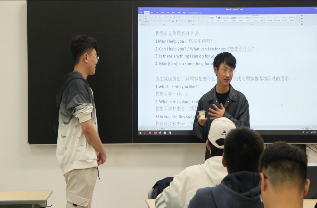 “哈利波特”主题月主策划朱泽遇同学对英语菜单进行详细讲解,并与“蓝岛英”总负责崔洪硕同学进行即兴集市买卖表演。
