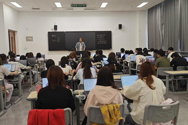 企业负责人慎波为学生们带来了精彩的分享。他首先介绍了南京盛庭科技有限公司在婚礼现场设计和装潢设计领域的专业经验和成功案例。慎波表示,设计不仅是美观,更是文化与情感的融合,尤其是在婚礼现场设计中,每一个细节都承载着新人对美好生活的期望和憧憬。随后,他以“设计赋能美好生活”为主题,围绕婚礼堂设计、空间装潢等核心领域继续展开分享。他结合南京国际会议中心婚礼堂改造、苏州园林主题酒店设计等案例,剖析了设计如何通过空间叙事传递文化价值。慎波强调:“当代设计不仅是美学表达,更是文化传承与情感联结的纽带,需兼顾实用性与艺术性。”
