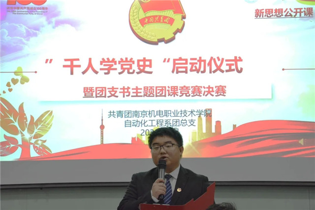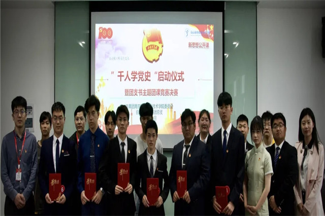 为庆祝建党100周年华诞,弘扬中国共产党的百年光辉历史,激发广大青年的爱国、爱党的热情,努力营造青年学子学习党史的浓厚氛围,扎实推进我校共青团组织建设,全面提升团支书上团课的业务能力,自动工程系团总支于5月19日下午在育德楼303会议室举行“千人学党史”启动仪式暨“学党史、强信念、跟党走”团支书主题团课竞赛活动。