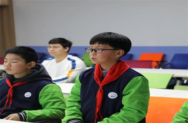 迎着冬日的暖阳,少先队员们首先来到了位于思学楼的智慧教室,团委金慧敏老师带领同学们上了一堂生动的团课,给少先队员们讲解了中国共产党的百年奋斗路,在授课过程中同学们积极回答问题,本次授课让少先队员坚定了“传承革命精神,争做时代好少年”的志向和信心。