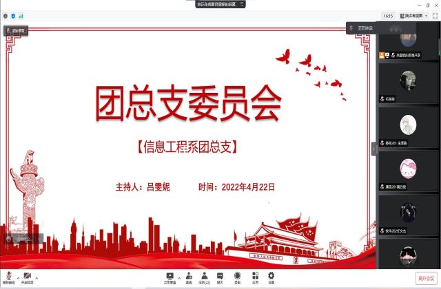 为增强同学们拥党爱党的信念,加强思想建设,开展了本次“喜迎二十大、永远跟党走、奋进新征程”主题教育实践活动。引领广大青年学习党领导下的青年运动史,坚定永远跟党走的信念。2022年4月22日星空网页版登录入口信息工程系团总支组织各团支部展开有关“党的青年运动史”的团总支委员会。