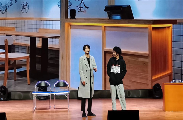 终于等到了我们社团年会上我们的表演,我们是多么的激动,多么的紧张,又是多么的开心,又是那么的印象深刻,特别是皇祥同学上场临场发挥是的改词以至于让和他对手戏的周睿手足无措。