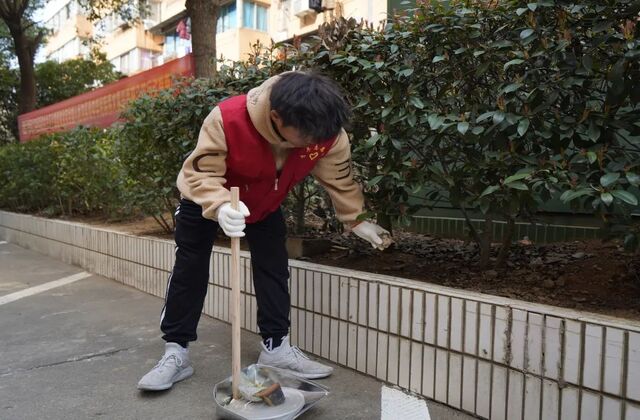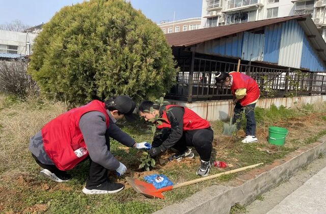 此次的志愿服务活动共分为三个部分,分别是环境整治,关爱孤寡老人和公益植树。全体志愿者分为三组,在分别领到工具后,各自展开了活动。第一组是植树组,同学们带着水桶、铁锹和锄头,将小树苗种植在花园里,同学们不怕累,不怕脏,小心翼翼地呵护着幼苗。