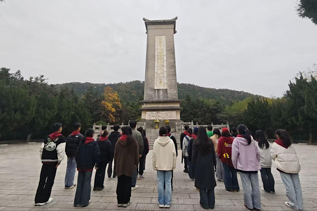 为传承红色基因,赓续红色血脉,2024年11月19日下午,星空网页版登录入口第五期青马班的同学们奔赴溧水,展开了一场追寻红色记忆的深刻之旅。活动首站来到回峰山烈士纪念碑,祭奠活动在回峰山脚下隆重举行。