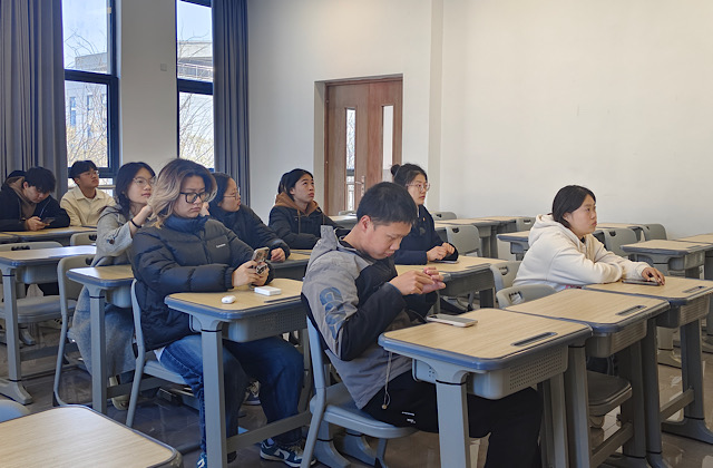 知识讲解环节中,杜灿灿同学着重聚焦于语音语调训练。她列举大量生动案例,对连读、弱读、爆破等发音技巧进行细致入微的剖析,还不时进行现场示范,让同学们直观感受这些技巧如何让英语配音更加自然流畅。同时,结合过往经验,杜灿灿同学从挑选素材、模仿发音到情感融入等方面给出备赛建议,让同学们对即将到来的英语趣配音大赛有了更清晰的认识。