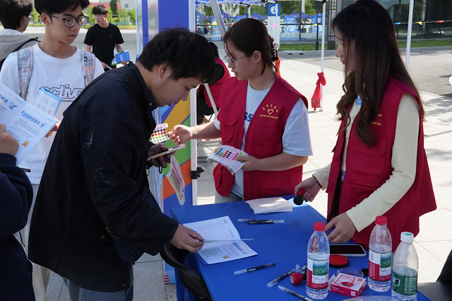 活动期间,身穿红色马甲的志愿者在各主题区默默坚守。他们耐心解答新生疑问,在“启动专业雷达”区协助操作设备,于“勇闯学涯矩阵”关卡引导团队协作;面对人流集中情况,及时分流疏导,确保动线畅通。从清晨布置场地到傍晚清点物资,志愿者们始终以细致服务保障活动顺畅运行。