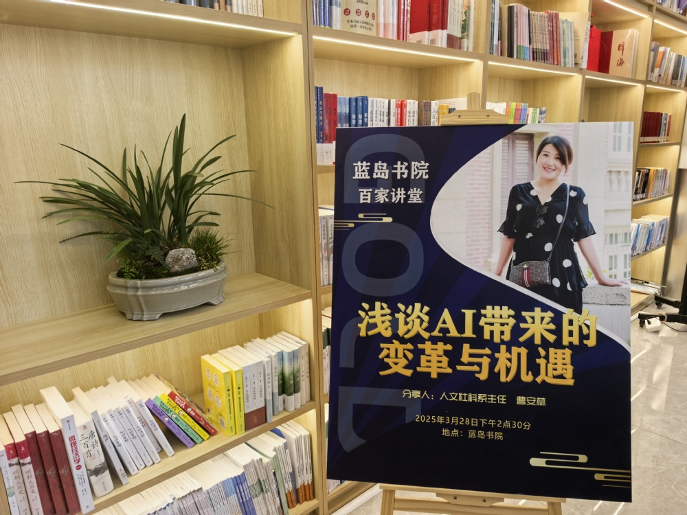 近日,蓝岛书院的“百家讲堂”活动正式拉开帷幕,首场讲座以“浅谈AI带来的变革与机遇”为主题,吸引了众多各系部同学的热情参与。此次活动由电气231班马天鹰同学主持,特邀人文社科系主任曹安林老师担任主讲嘉宾,为同学们带来了一场关于人工智能的知识盛宴。