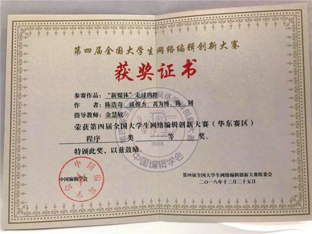 2017—2018学年:第四届全国大学生网络编辑创新大赛华东赛区一等奖