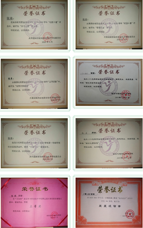 入学以来,荣获第三届全国大学生创新体验竞赛“创新价值”二等奖、2020年第二届全国《机械制图》万人联考江苏省二等奖、星空网页版登录入口第五届职业生涯规划大赛三等奖、2020江苏省机器人大赛F08室外安防巡逻组江苏省二等奖、院级优秀共青团员、军训优秀学员、2019-2020学年“校园十星”之“学习之星”、“管理之星”提名奖。