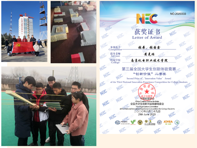 创新,是挺进新时代的一张通行证,是一个民族甚至国家赖以生存的灵魂。作为新时代大学生,他深知科技创新的重要性,在校期间积极通过各种方式开拓创新,将书本中的知识融入到具体的实践中,用理论武装头脑,指导实践。入校以来以第一、第二发明人身份提交发明专利申请2项、实用新型专利申请7项、外观专利申请3项。积极参加中英Steam创新大赛、中美青年创客大赛、全国大学生创新体验竞赛等各大创新性赛事,希望在竞赛的过程中汲取更多的灵感。他的细心与认真也更加帮助了他在创意创新这条道上一路前行。学习和生活之余,他积极与创客老师进行沟通与交流,善于发现生活中的问题,发散自己的思维,用自己的知识与耕耘换取每一份收获,用每一个点子激发自己砥砺前行。