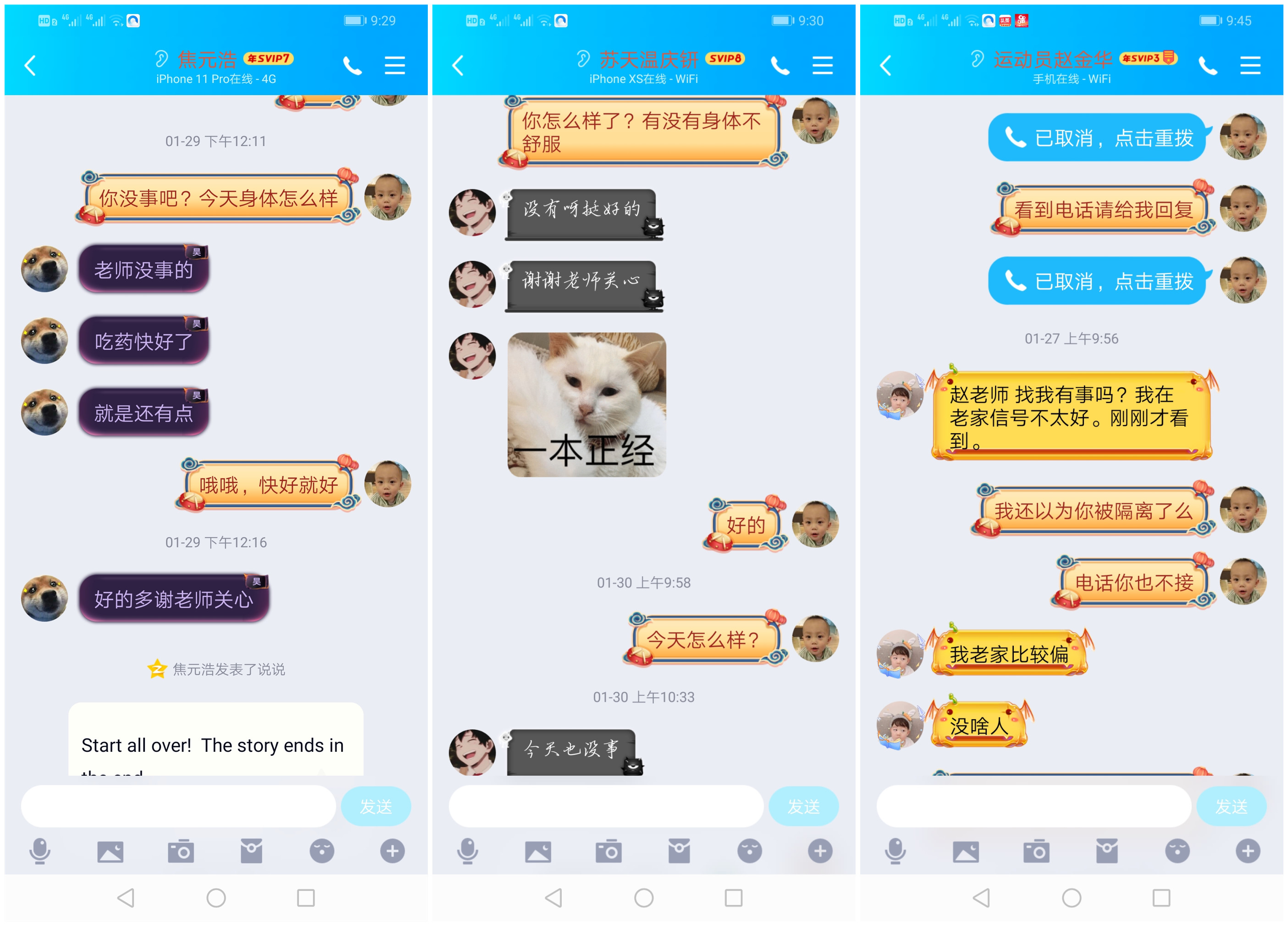 为了准确掌握每个同学在家的信息,我们实行班级打卡制,每日上报自己身体情况。每天早上八点,全班同学在班级群里接龙打卡,身体有感冒、发烧等症状同学私下联系辅导员。每天上午12点辅导员将自己和所带班级学生情况上报系部。为了让学生对这次新型冠状病毒以及日常防护有更多的了解,班级群里定期推送星空网页版登录入口学工处的相关文章,指导学生对疫情有正确认识,同时加强自身防护。指导大一大二学生安装超星软件,为网络授课做准备。