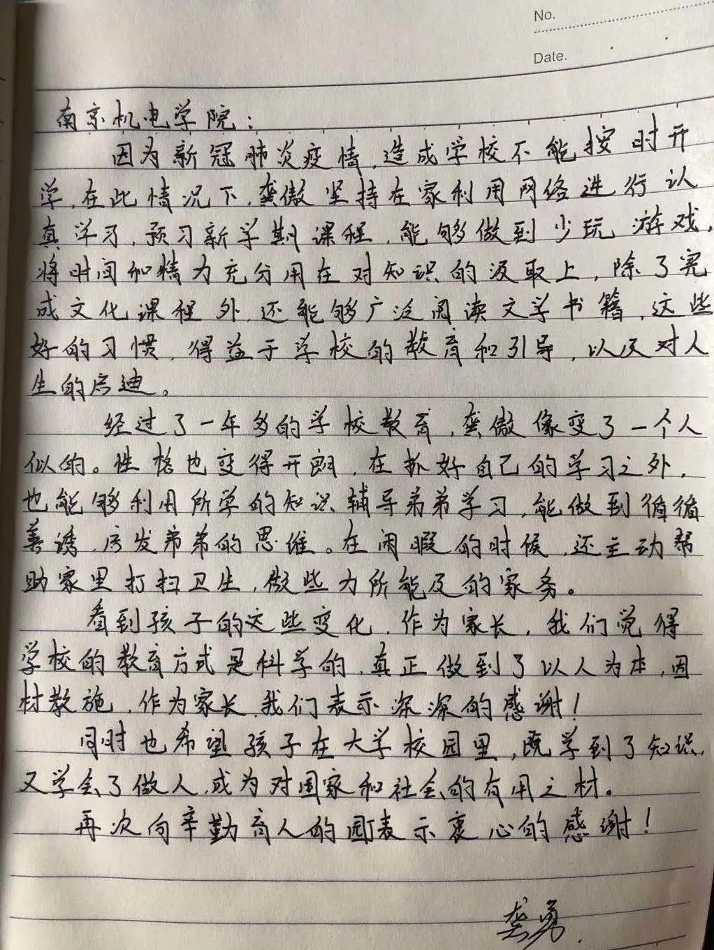 待久了,不由想起一些人,一些真情,一些感悟:疫情期间,生命的脆弱如此近距离地靠近我们。平安活着,成了眼前最美好的希望。这一切的期盼,都在心间,化成了抵抗肺疫的决心。赵利利老师在这场疫情中,舍弃假期,对学生的关怀甚至超越了自己的孩子。南机电老师的赤诚之心由此体现,学校的校德由此展现。她们是最美的人,也告诉我们凛冬即将散尽,星河永长明。