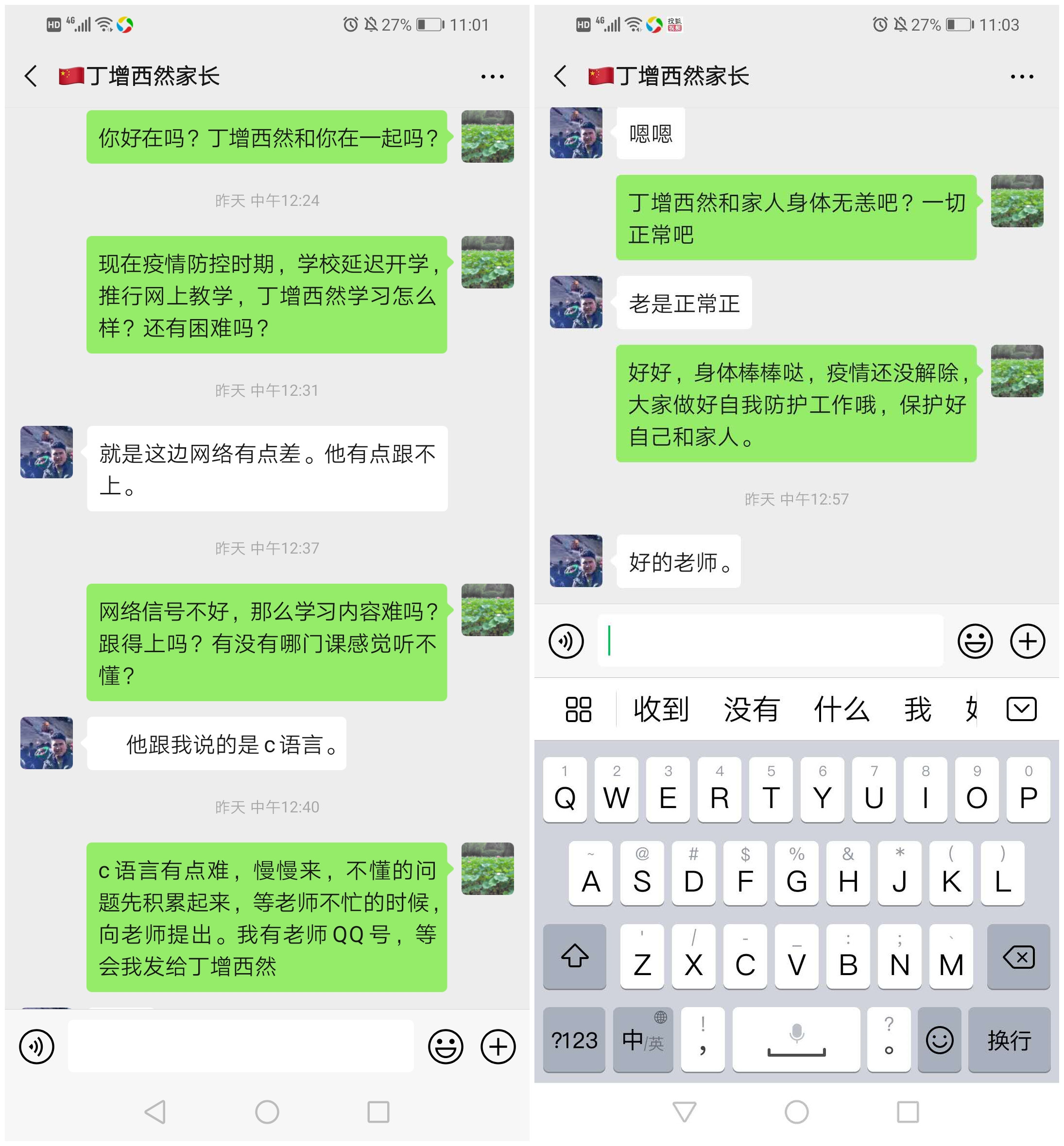 在这个不一样的假期里,面对学生作息时间混乱、假期超长易松弛失去了自控力等问题,通信系统运行管理182班辅导员柳亚婷每日提醒学生每天坚持学习打卡,在线上教学平台及时查看跟进他们的学习情况并进行督促,并挑选成绩全班第一、全专业第一、担任副班长的裘慧玲同学,作为学习标兵在群里进行宣讲,给大家树立正面的榜样。该同学1月19日回浙江省东阳市虎鹿镇仙芝陵村过年,2月9日回到江苏省南京市建邺区南苑街道爱达花园,至今仍旧保持居家隔离的状态,但全程始终坚持学习,积极应对,为转本打好基础。在和家长的沟通中,家长对学院防疫工作也表示大力支持,并对非常时期这种在线学习的方式表示认可。