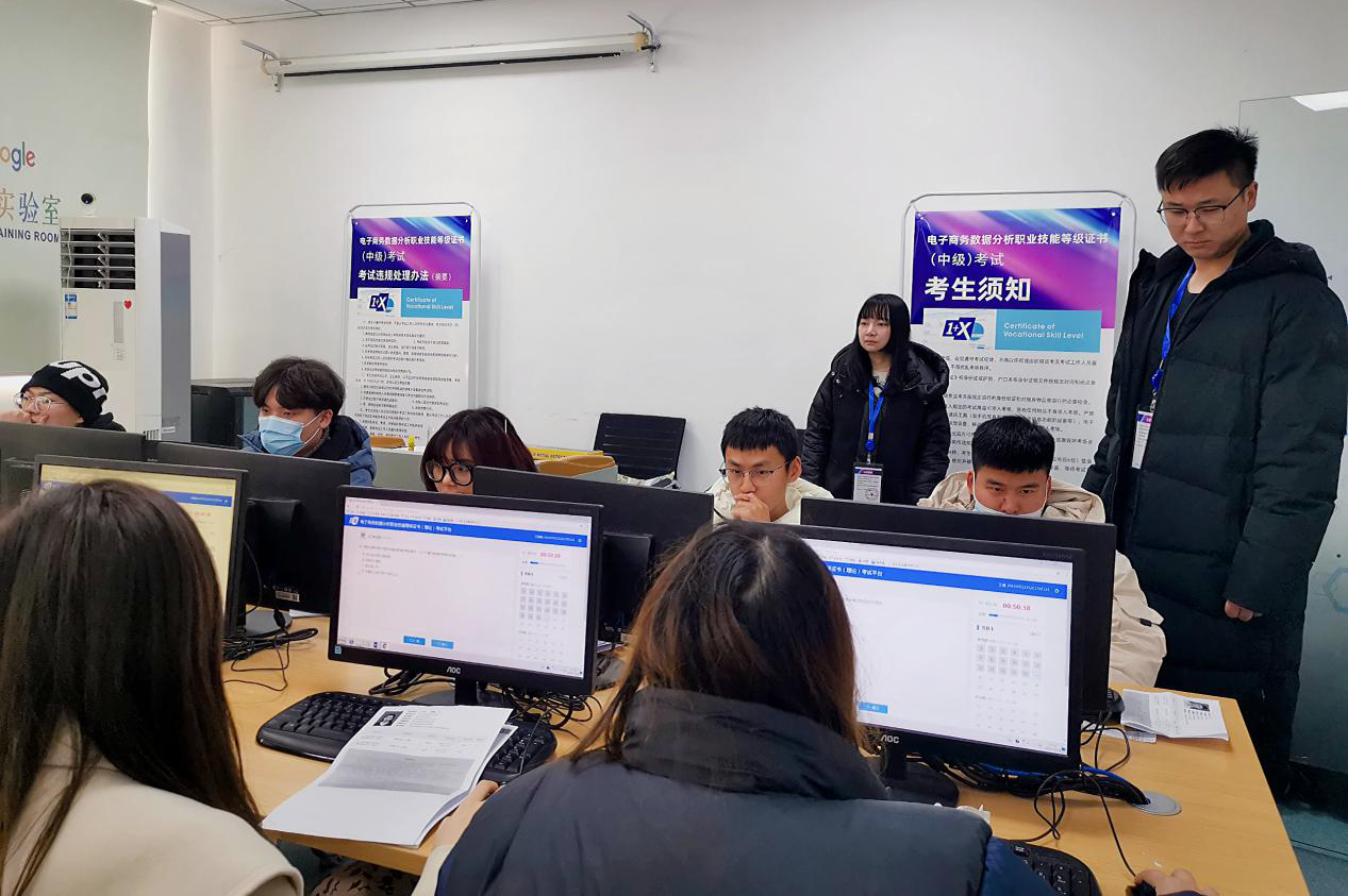 在此次考试组织过程中,学院领导高度重视。考试期间,信息工程系副主任刘娴作为主考指导认证工作,多名监考老师共同协助,保证了“1+X”电子商务数据分析职业技能等级(中级)认证考试圆满完成。