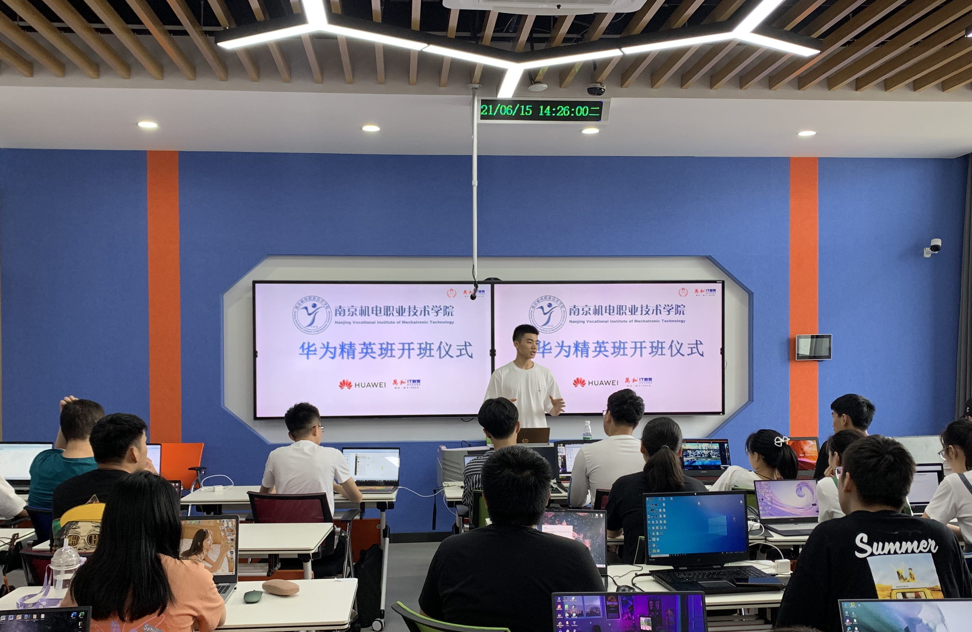 6月15日下午,华为精英班在博学楼410室举行了开班仪式。信息工程系主任王玮、华为江苏教育生态总监杨鹏、江苏万和教育经理陈闯、华为精英班授课教师王永巧和班主任喻志华参加开班仪式。仪式由喻志华主持。