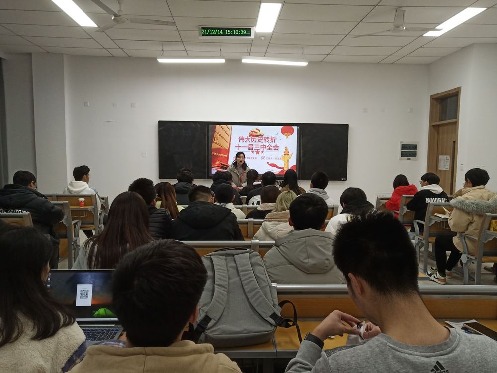 本次党课学习的内容是中国共产党十一届三中全会的会议内容和意义。党的十一届三中全会冲破长期“左”的错误的严重束缚,批评“两个凡是”的错误方针,充分肯定必须完整、准确地掌握毛泽东思想的科学体系,高度评价关于真理标准问题的讨论,果断结束“以阶级斗争为纲”,重新确立马克思主义的思想路线、政治路线、组织路线。上课的师生通过学习,了解到党的十一届三中全会,实现新中国成立以来党的历史上具有深远意义的伟大转折,开启了改革开放和社会主义现代化的伟大征程。再一次证明,中国共产党是伟大的政党,是敢于面对现实、善于自我革新、勇于担当重任的政党。