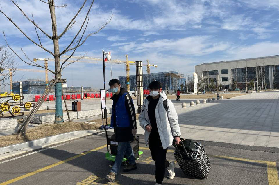 志愿者和老师们身穿蓝色防护服,面带微笑,在寒风中等候每一位学子的归来;志愿者们在校门口检查核酸报告、行程码、健康码等,贴心地帮助同学们搬运行李;各班辅导员老师去每个宿舍看望每一位报到的学生。宿舍楼,宿管阿姨们早早的将宿舍楼道打扫的干干净净,让每一位离开家的学子再次感受到了家的温暖。