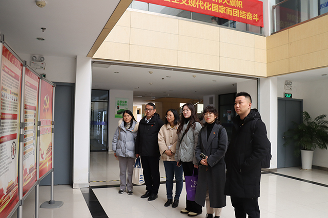 在总经理助理潘志强、人力资源部主任王亚东等高管的陪同下,信息工程系师生一行参观了该公司办公区和企业文化区,深入了解了中邮建技术有限公司的党建成果和企业文化。随后,双方在公司会议室召开了研讨会,就党建引领校企合作、人才培养、专业设置、实习实训等方面进行了深入的交流。