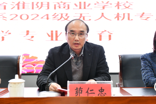 活动在江苏省淮阴商业学校校长茆仁忠的热情致辞中拉开序幕。茆校长在致辞中着重阐述了学校在培养学生方面的两大核心策略:一是构建“六位一体”的育人共同体,通过多方协同,实现德育、智育、体育、美育、劳育全面发展的教育目标;二是创立“五彩全纳”三全育人品牌,依托一系列完善的制度及评价体系,致力于培养具备高素质的综合型人才。此外,茆校长特别对24级无人机班的同学们自开学以来的优秀表现给予了高度评价,并勉励大家珍惜在校时光,勤奋学习,以期在未来能够为家乡的发展贡献自己的力量。