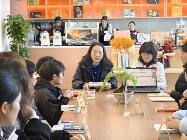 12 月 19 日,阳光正好,信息工程系在蓝岛书院举办以 “啡” 常阅读,“书” 适青春为主题的阅读分享会。蓝岛书院内咖香四溢,众多同学慕名而来,现场气氛热烈。此次分享会由信息工程系党支部书记胡枫,辅导员臧琼、图书馆王君,信息工程系10名团学骨干、5名心理气象站学生共同参加。