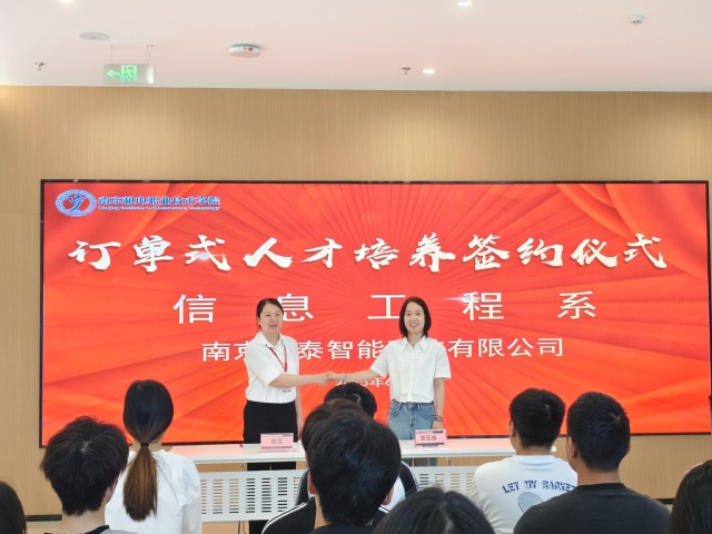 南京迎泰智能科技人力资源部总经理曹丽雅表示,企业正处于高速发展期,对兼具专业能力与创新思维的高素质人才需求迫切。订单班模式实现了企业从课程设置、实训指导到就业对接的全流程介入,既解决了传统人才培养与产业需求脱节的问题,也为企业储备了适配智能科技领域发展的优质人力梯队。