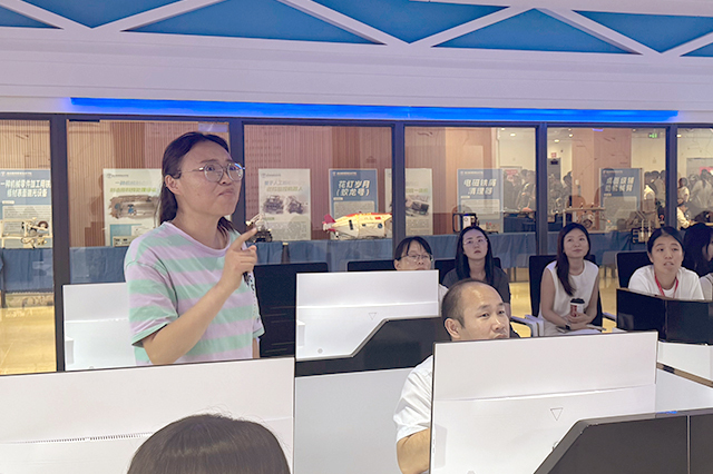 最后,全体参会人员在卫星测控中心中观摩了精密仪器设备与虚拟仿真系统。在黄威的细致讲解下,教师们系统了解了卫星信号接收、数据处理等核心技术环节,还近距离观察了各类精密仪器的工作原理与实际应用场景。教师代表亲身体验了长征火箭发射互动模拟项目,沉浸式感受科研实践的独特魅力。现场观摩不仅丰富了教师们的技术认知,更启发大家从实际科研场景中挖掘专利创新点,为后续推动教学与科研深度融合奠定了坚实基础。