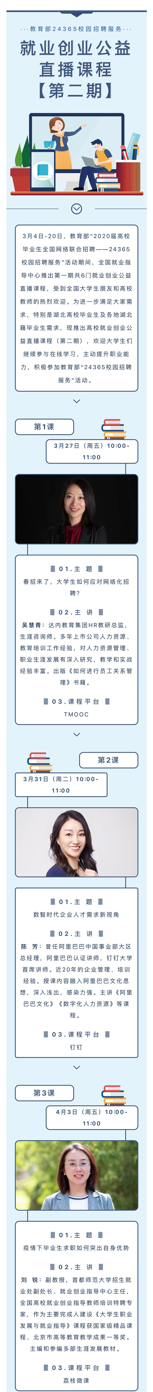 教育部24365校园招聘服务 就业创业公益直播课程(第二期)课程安排来喽!