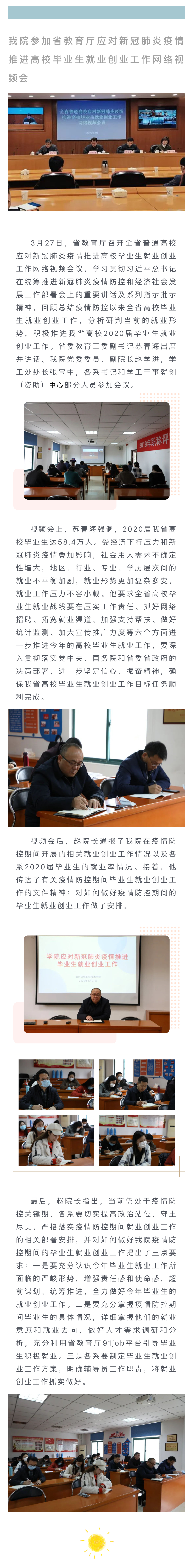 我院参加省教育厅应对新冠肺炎疫情推进高校毕业生就业创业工作网络视频会