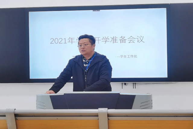 学工处处长张宝中传达了省政府、省教育厅关于2021年春季开学工作的相关精神。通报了近期学校疫情防控工作和开学准备工作的进展情况,对做好2021年春季学期开学疫情防控、安全稳定有关工作,进行再安排、再部署。