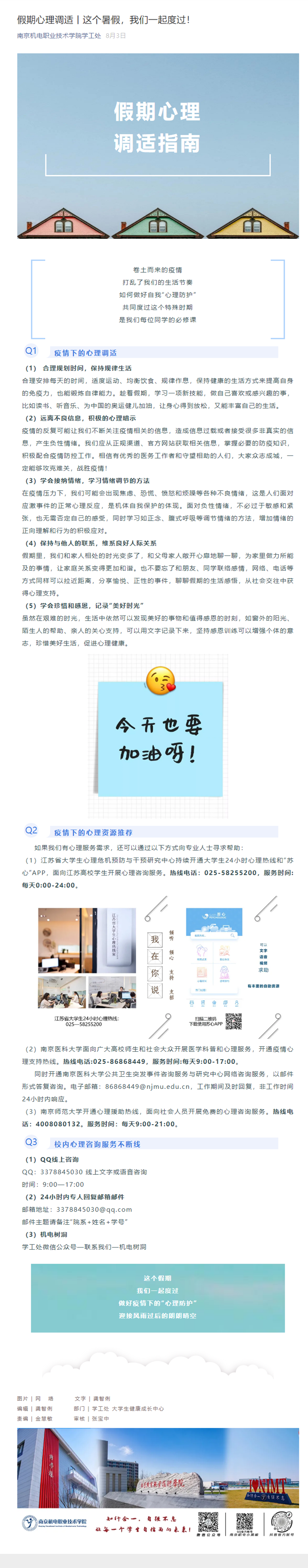 假期心理调适丨这个暑假,我们一起度过!