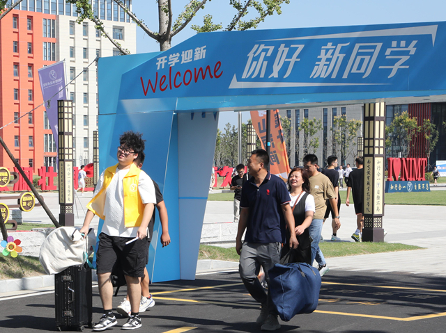 学校还投用了行李接驳车,方便新生们行李的搬运。随着新生们陆续进校,我校志愿者开始了紧张而有序的迎新工作。校园的各个路口都有志愿者的忙碌身影。接待新生,志愿者们亲切问好,耐心的给新生及随行家长引导方向、协助新生搬运行李,按照迎新流程有条不紊地引导新生顺利完成报到。