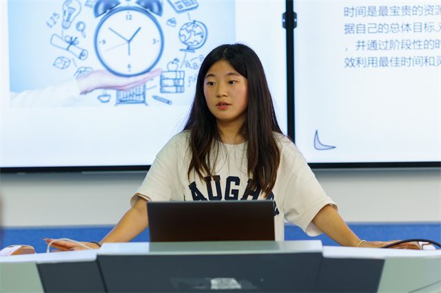 蒋翔宇同学从亲身经历出发,以时间管理规划为主题,分四个方面进行相关分享。在如何有效规划时间方面,蒋翔宇向同学们强调时间管理的重要性,提醒同学们高效率地利用时间必须认识到自己要成为时间的主人,在时间管理步骤方面,蒋翔宇分享自己对一件事情的分解、分配、任务的复盘以及任务的调整;在时间管理效能方面,他告诉我们要找到自己的目标,明确自己努力的方向,保证自己在正确的目标上不断挑战,持续跟进;在时间管理效率方面,他表示设置优先级将任务按重要性和紧急性分类,做到及时处理,制定明确的目标和计划,确保自己每天都能保持。