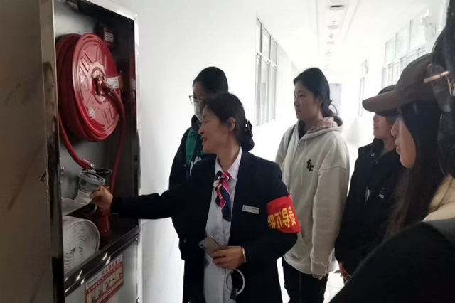 在火灾发生时,如果火势较小,可以利用身边的灭火器材进行初级的灭火操作,防止火势进一步扩大,常见的灭火器材有灭火器、灭火毯、消防栓等。通过宿管老师详细的介绍,同学们了解到了如何正确使用这些器材,例如灭火器的使用步骤是拔销、对准火源、压下把手;灭火毯则是将其完全覆盖在火源上,切断氧气供应等。