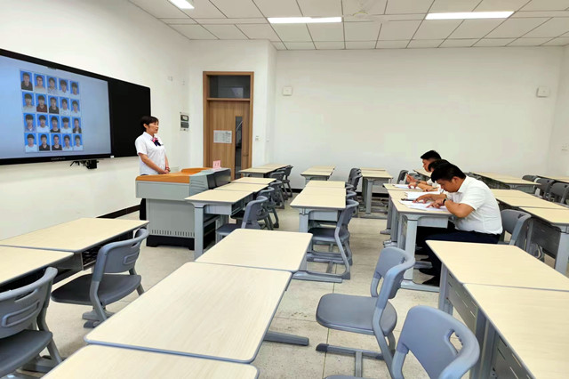 本次操作能手竞赛采取理论知识和实操综合技能测试相结合的模式,包括基础通识、业务熟悉、卫生安全检查、外来访客登记、快速识人等五项内容。理论考试在思学楼113以问答的形式进行考核,考察宿管老师综合分析、解决问题的能力,检验宿管对学生公寓相关事项的掌握程度,及时发现自身不足,针对性取长补短。