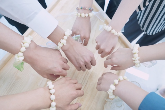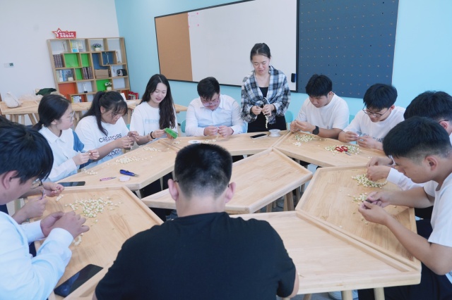 此次活动吸引了众多同学积极参与,她们共同制作茉莉花手串,感受传统文化的魅力。每个人都用心打造出属于自己的手串作品,通过细腻的手艺、精致的设计,将自己的理念和情感融入其中。大家互相交流和分享,共同提升手工技能,也加深了彼此之间的友谊和合作精神。