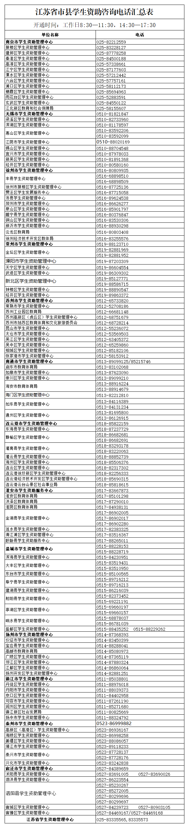 学生资助热线电话