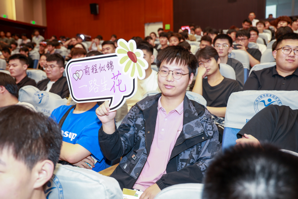 学校特别邀请2009届数控技术专业毕业生、中国电子科技集团公司第十四所首席技师何超作为优秀校友代表发言。他从扎根、突破、传承三个方面分享励志成长故事,讲述他从学校技能竞赛走向全国数控技能大赛获奖的奋斗经历。希望学弟学妹们以扎实的技能为笔,以创新的思维为墨,在中国制造向中国创造的征程中,书写属于自己的精彩篇章。