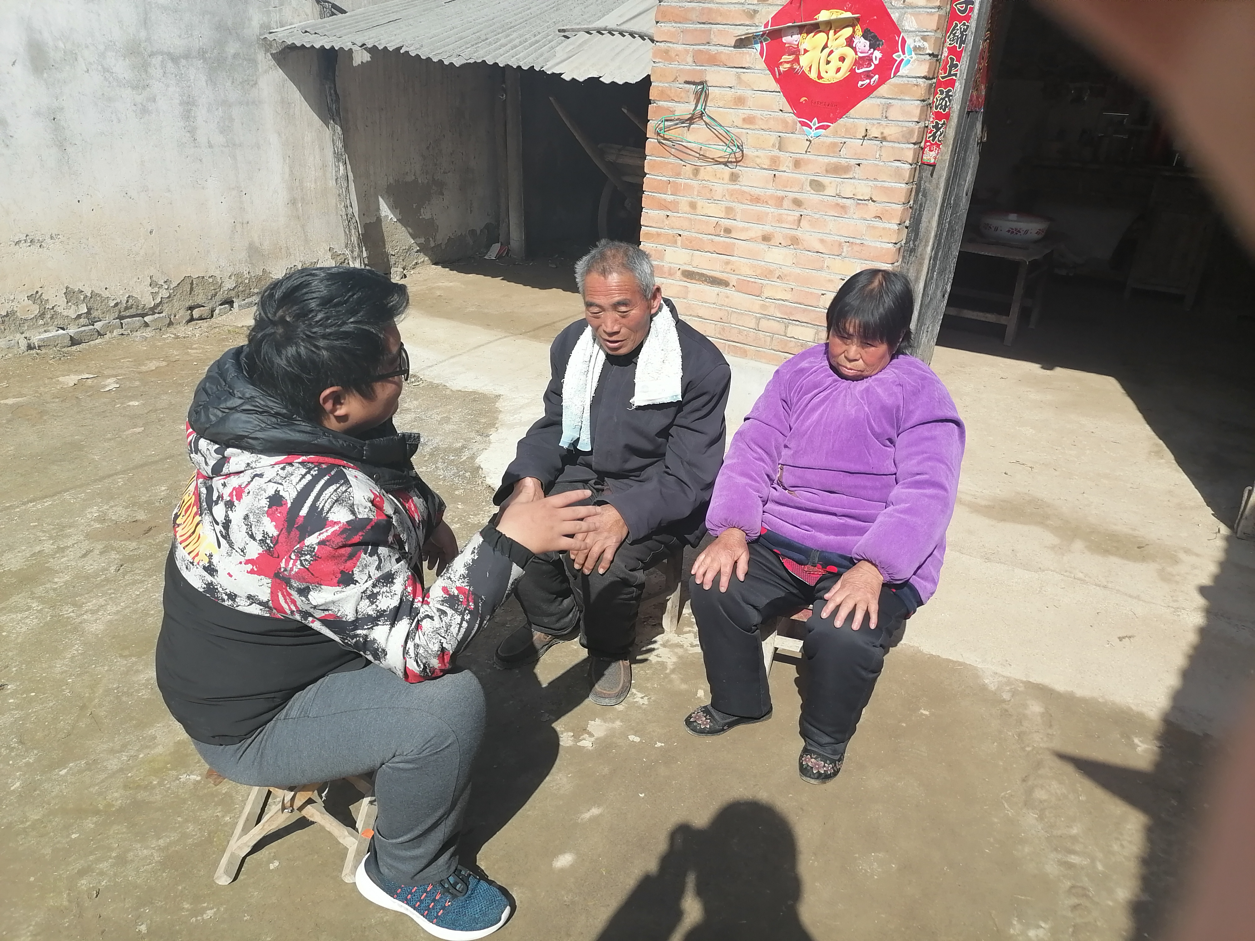 我值岗的疫情检查站在村子的主干路上,大家进出村子都要经过这条路。我主要负责为进出人员测量体温和查验外来人员信息。我值班的时间是早上7点到下午六点,中午12点进行一次短暂交班。第一天早上特别寒冷,即使和我在一起值班的爷爷把他的帽子和手套都给了我,我还是觉得浑身瑟瑟发抖,发现自己的手脚都是僵硬的。但是一想到自己的责任,一想到前线的医护人员,我就觉得自己并不是那么的冷了。苟利国家生死以,岂因祸福避趋之。我是一名大学生,面对疫情,做我能做到的工作是我的职责;我是一名志愿者,哪里有需要,我就出现在哪里;我是一名中国人,国家有困难,挺身而出是我的责任。