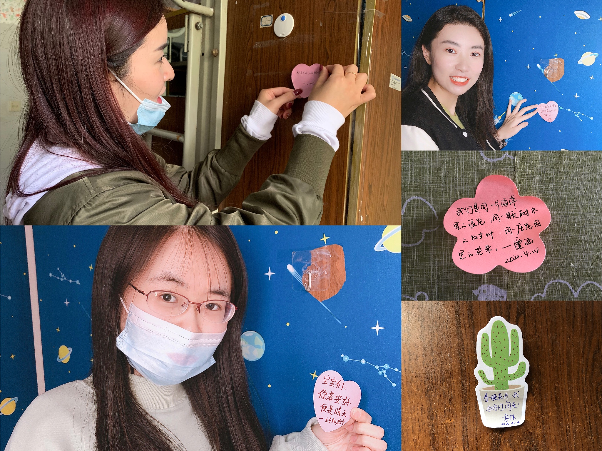 各个辅导员也纷纷在宿舍里为同学们留下小贴士。王晨歌老师在小贴士中写道:“你们的平安健康是老师最大的心愿。”王子灿老师给同学们写:“你若安好,便是晴天。”贾涵老师为同学留言了古罗马思想家Seneca的名言:“我们是一片海洋里的浪花,同片森林中的树叶,同一座花园里花朵”,当她看到中国在送去意大利援助物资上的留言时,她深受感动,她认为老师与同学们也是同一片海洋里浪花。此外,平时在讲台上特别严肃的任课老师也都化身温柔的仙女,晾晒结束后,又纷纷为同学们整理好床铺。