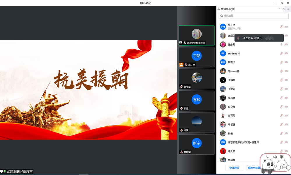 5月3日,自动化工程系通过腾讯会议在线开展“党的故事我来讲”暨党员一人一故事活动,全体教职工参加学习。本次学习由武建卫老师担任主讲人,分享抗美援朝始末以及抗美援朝中英雄人物的故事。