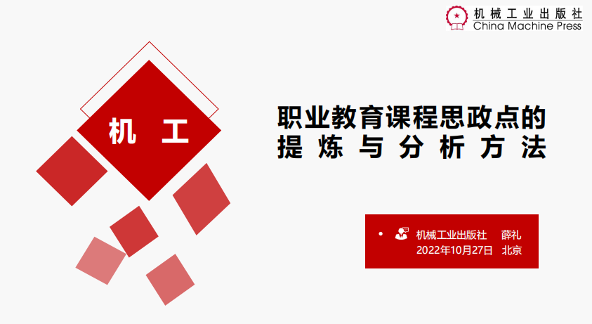 为进一步提升机电一体化专业教师专业能力,提高育人水平,推进“课程思政”建设,10月27日晚,机电一体化教研室邀请机械工业出版社职教分社策划部主任薛礼在线为全体教师分享了“职业教育课程思政点的提炼与分析方法”主题讲座。机电一体化教研室负责人叶泉主持讲座,教研室全体教师在线听取讲座。
