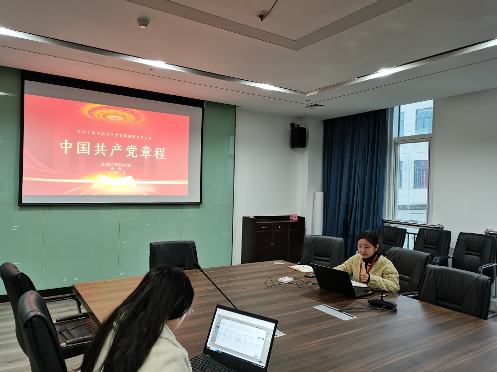 11月29日下午,自动化工程系党支部在育德楼303会议室举行主题党日活动,重点学习《中国共产党章程(修正案)》。此次活动采用线上+线下的形式,党支部组织委员俞青主持会议并作交流发言。