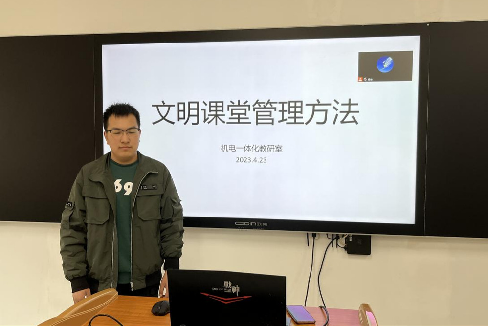 为了加强专业文明课堂建设,进一步提高教师的教学质量,培养学生良好的学习氛围,4月23日下午,机电教研室在博学楼109教室开展了“文明课堂管理方法”的教研活动。机电教研室全体教师参加会议,杨俊老师主持活动。