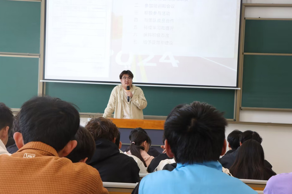 首先,李飞龙进行了自我介绍,向同学们解释了志愿服务精神及正确理念。他认为志愿服务不仅可以提升自己能力,还可以服务社会。志愿者不仅仅是一份工作,更是一种对人生价值的追求。