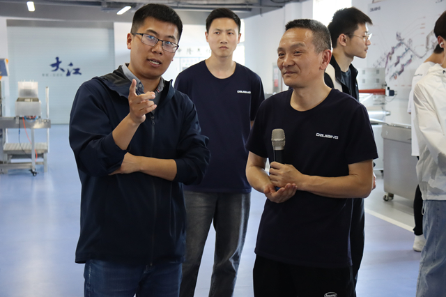 研学实践团一行首先前往江苏大江智能装备有限公司,实地体验公司的生产环节,聆听工作人员讲解生产流程、生产工艺、售后保障等业务知识,感受理论知识与实际生产之间的紧密联系,深刻感受到了新质生产力的创新性和变革性。
