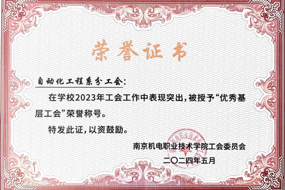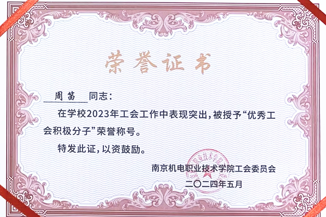日前,学校工会委员会公布了《2023年度“优秀基层工会”“优秀工会干部”和“优秀工会积极分子”评选结果》,自动化工程系分工会喜获2023年度星空网页版登录入口优秀基层工会组织,周笛被评为2023年度星空网页版登录入口优秀工会积极分子。