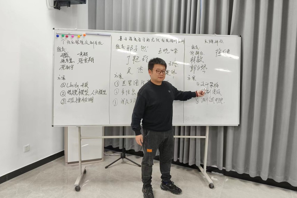 经无记名投票,唐建伟的基于深度学习的光伏发电短时预测、张雪翔的个性化眼镜定制系统、徐健的灭烟神器三个项目成功晋级创客项目原型制作期。三组被选中的创客项目创意提出者再次上台具体描述了自己项目的背景、初期方案,并现场招募了组员成功建组。