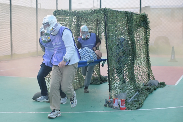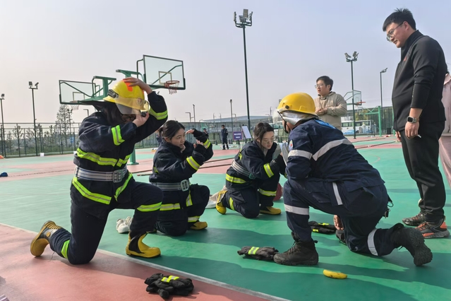 又讯,11月22日下午,自动化工程系全体教职工在篮球场参加了教职工应急救援技能运动会。