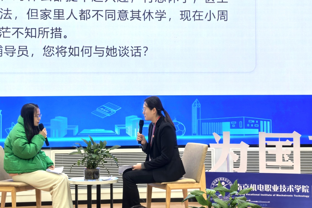 比赛分为案例研讨和谈心谈话两个环节。案例研讨采用“我提问,你回答”的方式开展,由两位选手围绕案例,共同辨析原因、研讨对策、总结规律。辅导员们围绕精心设置的学生工作真实案例进行深入探讨。案例涵盖学业帮扶、心理问题疏导、校园危机事件应对、学生干部培养等各个方面,主要考察辅导员综合运用理论分析问题、研判问题、解决问题、应急处突等能力。参赛辅导员深入把握学生动态,针对案例情况和问题特点,提出问题,研讨解析,围绕抽取案例中的问题本质、解决思路、实施办法等进行阐述。